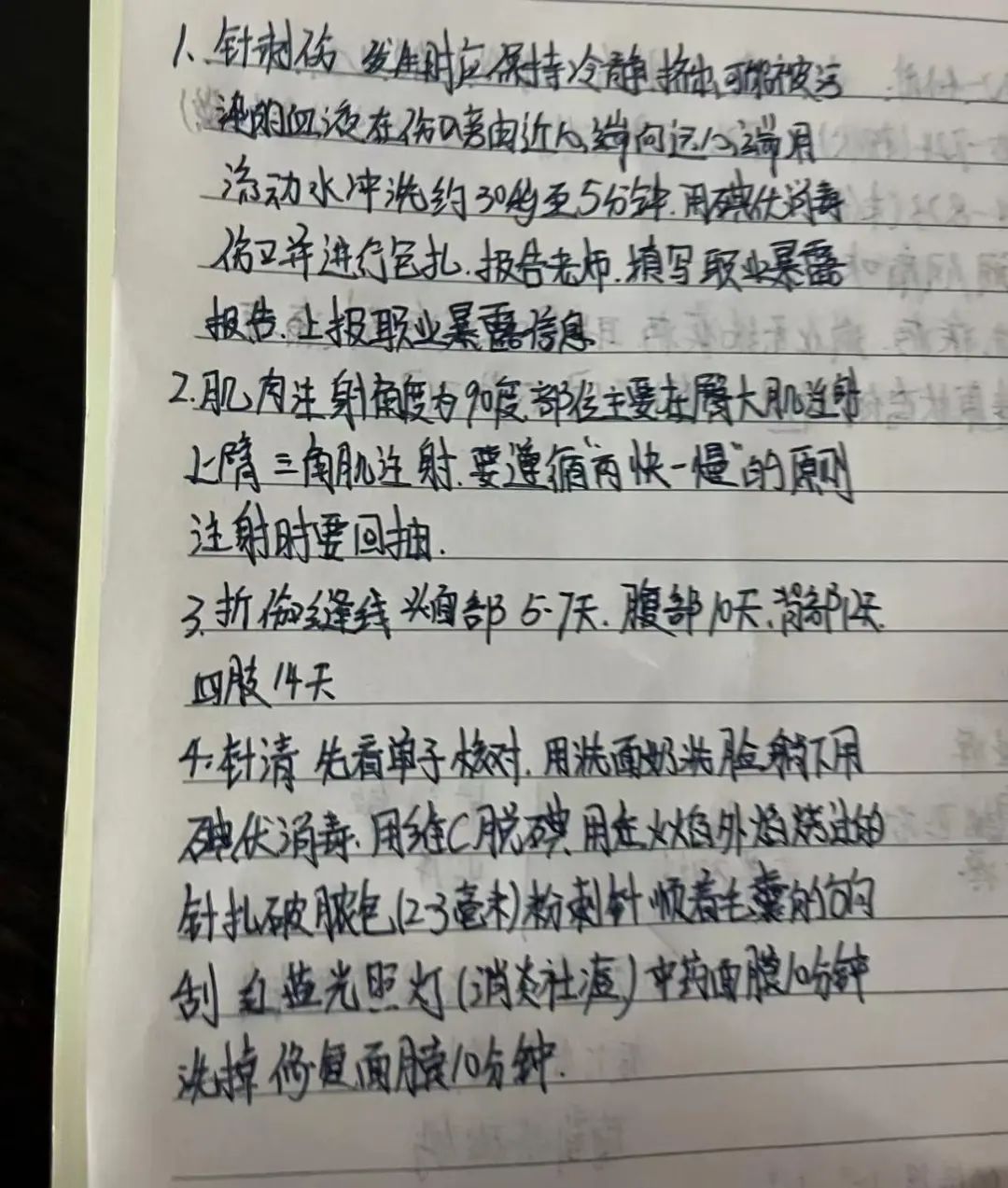 每周都有小讲课以及考试,这让我们没有机会闲下脚步,一直在充实、督促自己。在这一个月的实习期间,护理部还有一次操作抽查,考的是皮下注射,让我学会了如何边做操作边与病人沟通以及宣教,还有“无菌”原则和“三查八对”制度是重中之重,这也少不了带教老师的悉心指导,才能发现问题,及时改正。