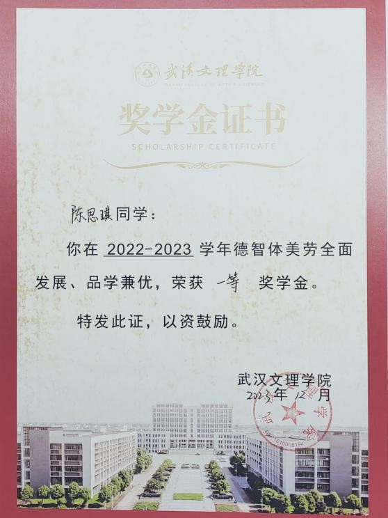 2023年11月,经过严格考核,陈思琪被选拔进入华中科技大学同济球友会附属同济医院,与华科、郑大等13所院校的实习生们一起临床实习。期间,她多次考核第一,多次被教学总辅导表扬并在急诊科被老师们评为优秀实习生,收到众多患者及家属的感谢。