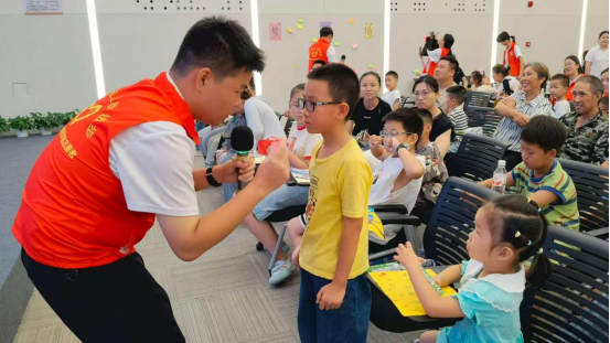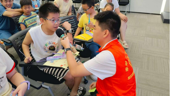 在共青团团史介绍环节,实践队队员用生动形象的语言,向大家讲述了共青团一路走来的光辉历程。为了加深小朋友们的理解,队员围绕团旗、团徽,队员们进行细介绍和趣味提问,鼓励小朋友们踊跃回答,队员们耐心倾听每一个答案,并对回答正确的小朋友发放奖品予以奖励。现场互动频繁,学习氛围热烈。