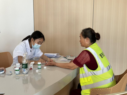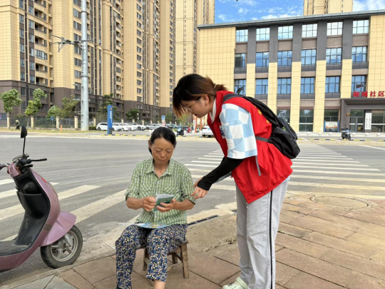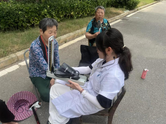 实践队员在新城社区党群服务站、小区各角落、居民家长,耐心为居民测量血糖、血压指标,详细记录数据,并针对数值异常的村民给予个性化健康提示。并围绕居民提出的常见慢性病管理、夏季养生、合理用药等问题,用通俗易懂的语言答疑解惑。