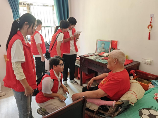 队员们询问老人对如今国家发展的看法。程祥炼老人感慨万千:“现在的生活真是翻天覆地的变化,国家越来越强大,人民生活越来越好。这都是党领导的好啊!当年我们在战场上拼死战斗,就是为了能让后代过上好日子,看到如今的繁荣景象,我们这些老家伙觉得一切都值了。” 他勉励实践队队员们要珍惜现在的学习机会,学好专业知识,将来为国家的医疗事业贡献力量,做一个对社会有用的人。