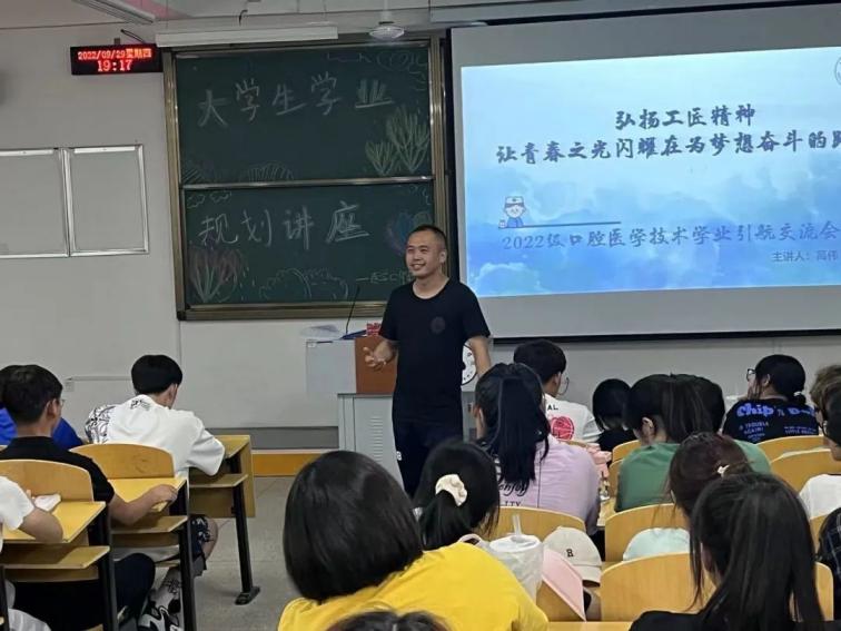 丹桂飘香,金秋送爽。球友会对22级新生入学教育给予高度重视,9月27日和29日晚,球友会面向院内22级医学影像技术专业和口腔医学技术专业新生,在5-428教室召开了老员工学业规划讲座。由球友会行政副经理兼党总支书记高伟担任主讲老师。