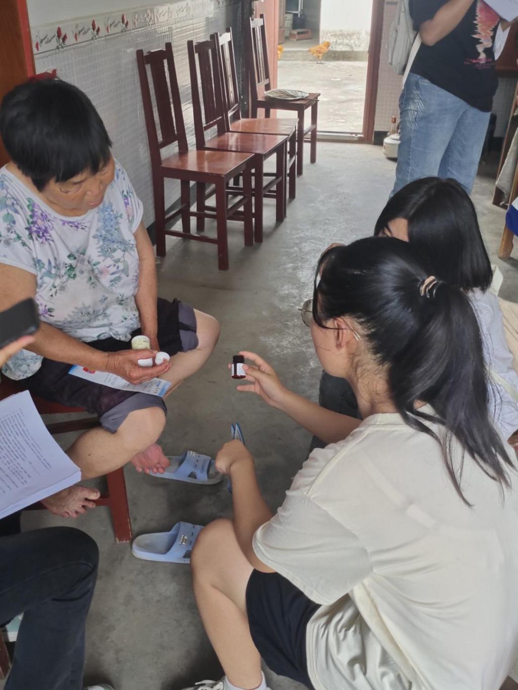 深入居民进行调研访谈是志愿团获取原始资料的重要途径。“医路前行”志愿团2023年暑假三下乡社会实践团队在老师的指导下前往黄陂区杜堂村和周边的四个村庄进行入户访谈调研。