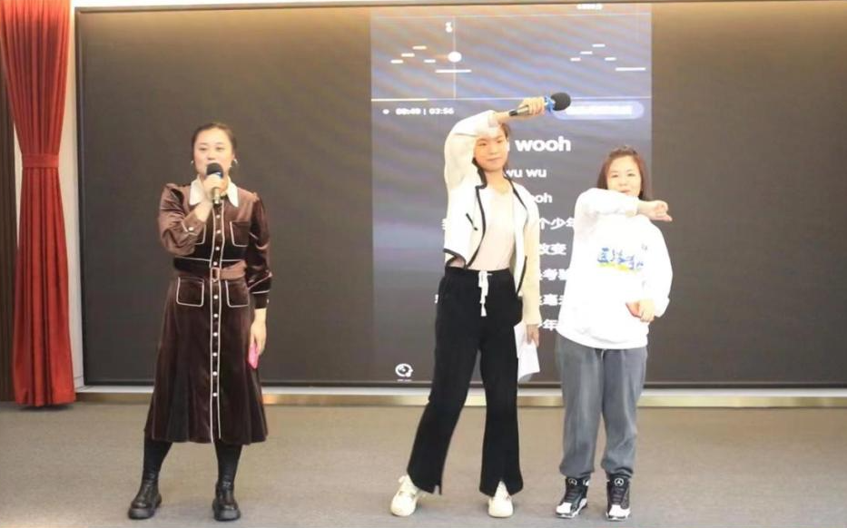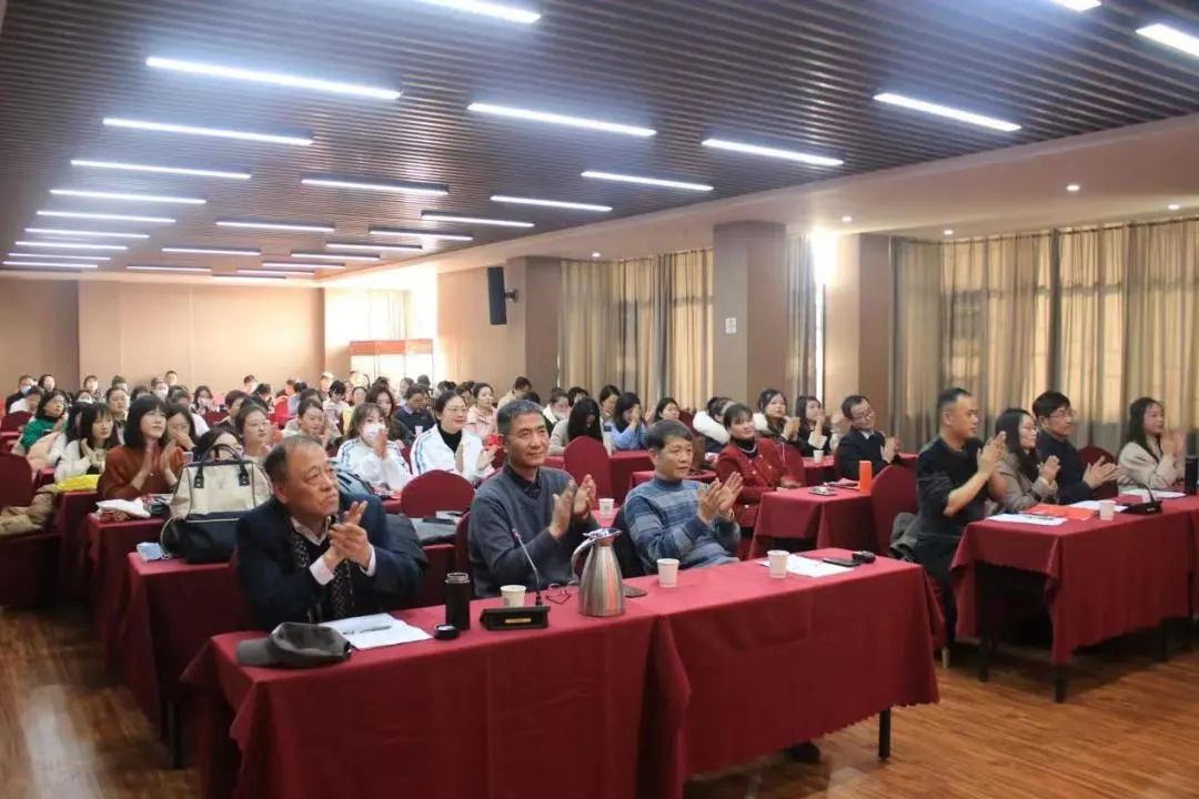 台下教职工喜笑颜开,为表演喝彩