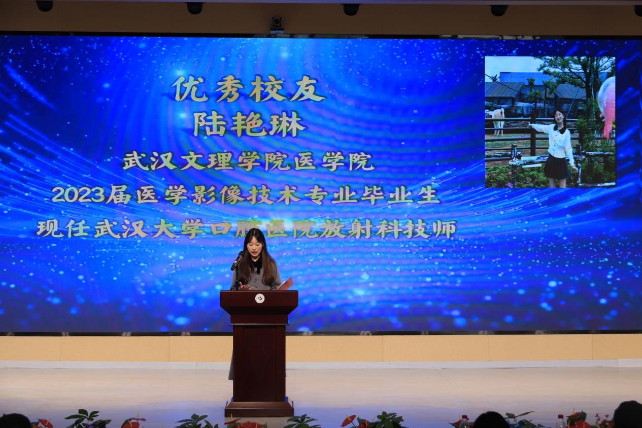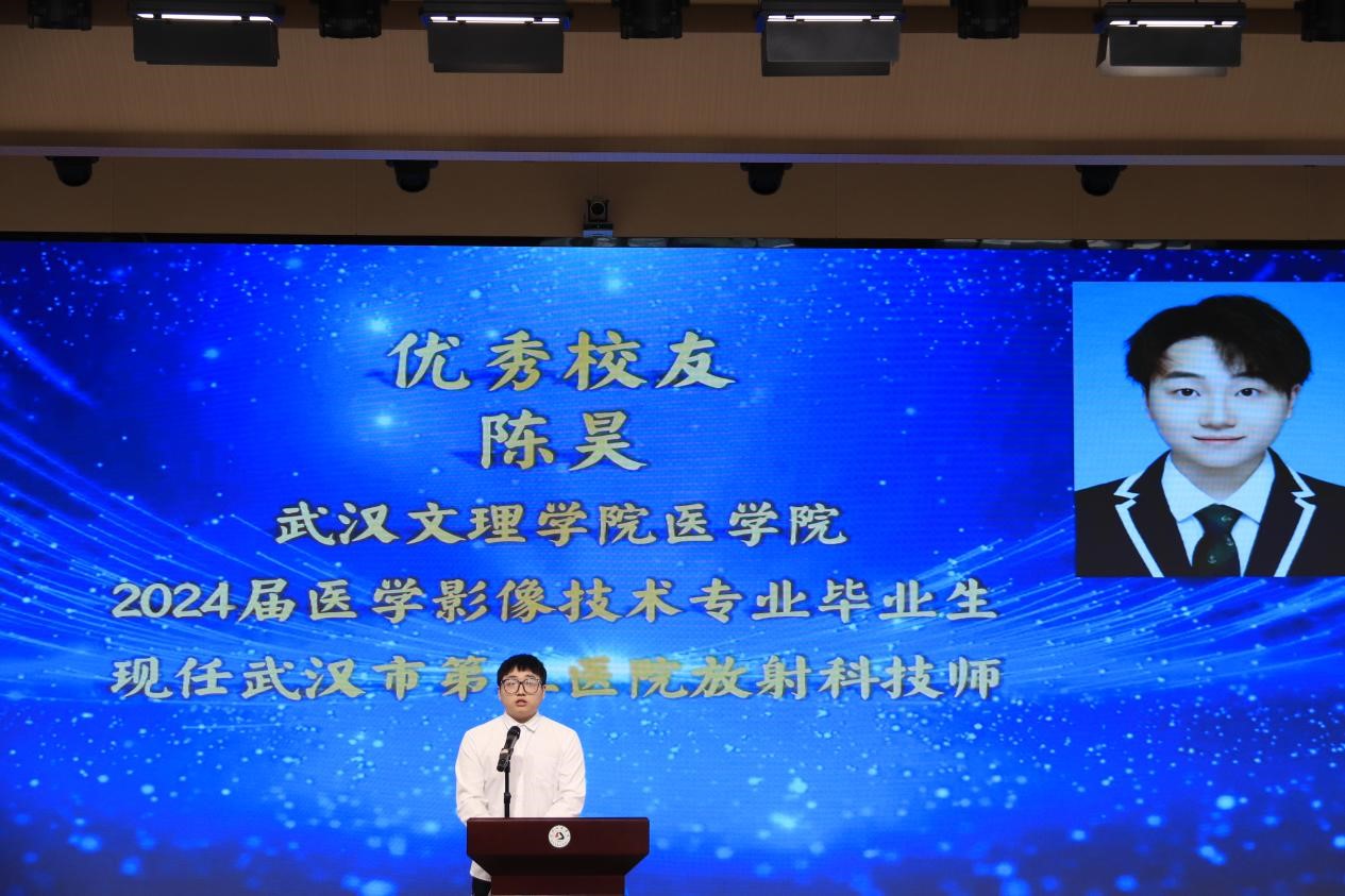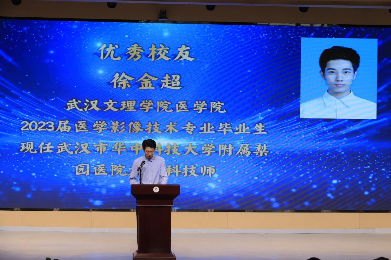 来自华中科技大学附属梨园医院的徐金超、武汉市第五医院的王翔宇、武汉市普爱医院的甘力、汉阳医院的周子修、武大口腔医院的陆艳琳和王文怡、江夏区大桥街社区卫生服务中心的任宝珍、东西湖区卫生健康局的曾庆如、武汉市第三医院的陈昊、武昌医院的朱宇菁等优秀员工依次发言,员工江鹏飞、赵慧和卢法富以VCR方式进行分享。他们谈及自己的学习方法和职业发展情况,为在校的 21 级、22 级、23 级医学影像技术专业员工提供了宝贵的学习和工作建议。