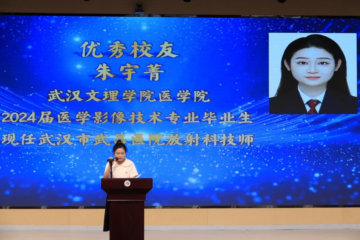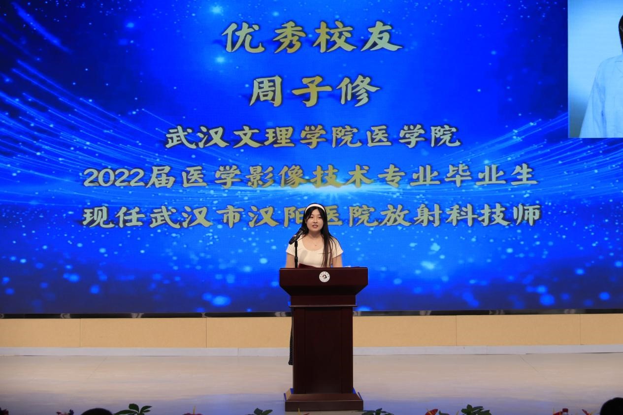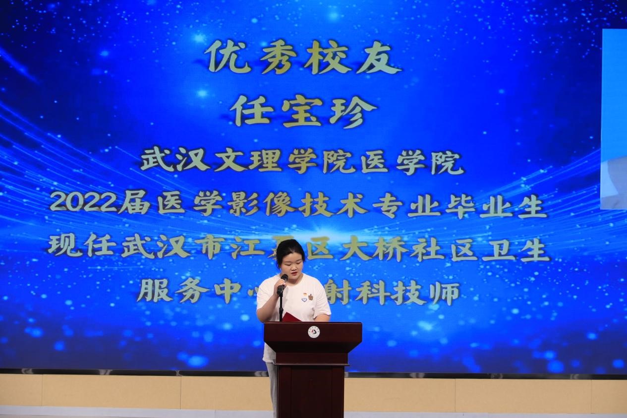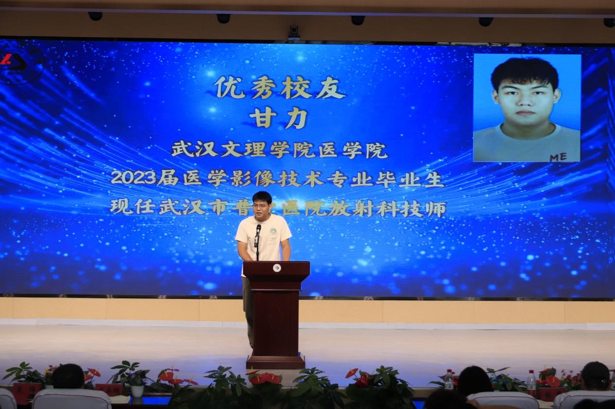 来自华中科技大学附属梨园医院的徐金超、武汉市第五医院的王翔宇、武汉市普爱医院的甘力、汉阳医院的周子修、武大口腔医院的陆艳琳和王文怡、江夏区大桥街社区卫生服务中心的任宝珍、东西湖区卫生健康局的曾庆如、武汉市第三医院的陈昊、武昌医院的朱宇菁等优秀员工依次发言,员工江鹏飞、赵慧和卢法富以VCR方式进行分享。他们谈及自己的学习方法和职业发展情况,为在校的 21 级、22 级、23 级医学影像技术专业员工提供了宝贵的学习和工作建议。