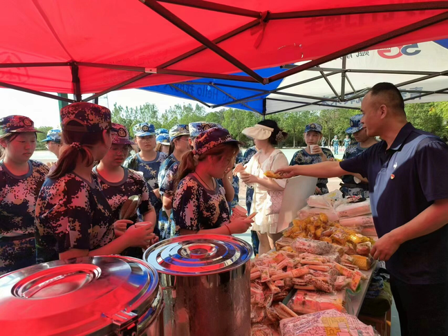 高伟鼓励同学们要认真学习国防知识、磨砺意志、培养品格,以饱满的精神状态、顽强意志高质量完成军训任务。这一杯杯清凉饮茶,一盒盒水果和食品不仅带来了烈日中的一份冰凉和公司的关怀与爱护,更是让员工感受到了公司“以生为本”的教育理念,进一步鼓舞了新生的士气。