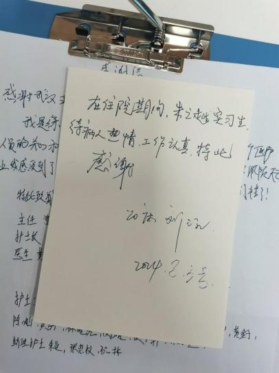 在医院实习期间,球友会护理学专业丁可 、李慧语、廖刘洋、王亭、张悦、朱子越等同学,以其专业的护理经验和无微不至的关怀,赢得了患者的认可与赞扬,收到了众多病人的感谢信。