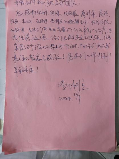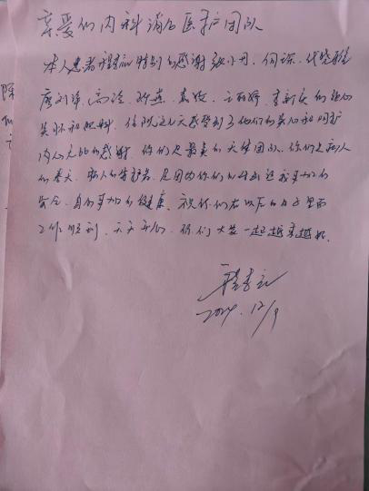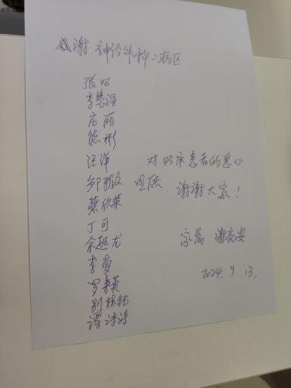 “你们的温馨关怀与帮助,让我有一种强烈的亲近感,使我专心在医院检查与治疗。”