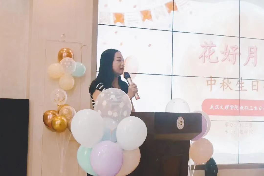 9月27日12:40-13:45,校19栋101传来阵阵欢笑和掌声,气氛温馨、热烈,循声寻去,场内正在进行由千亿球友会工会委员会主办、球友会承办的“花好月圆 中秋生日会”——千亿球友会教职工9月集体生日团庆活动。
