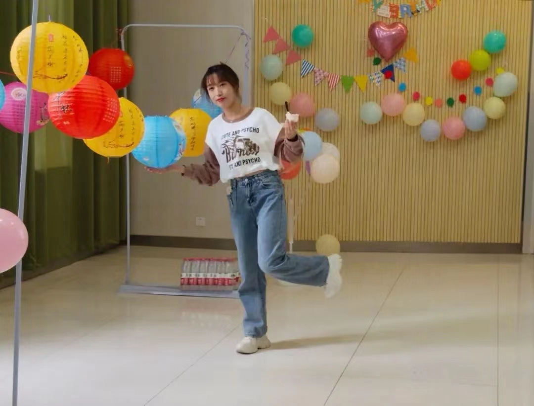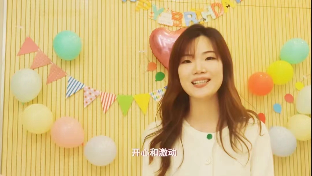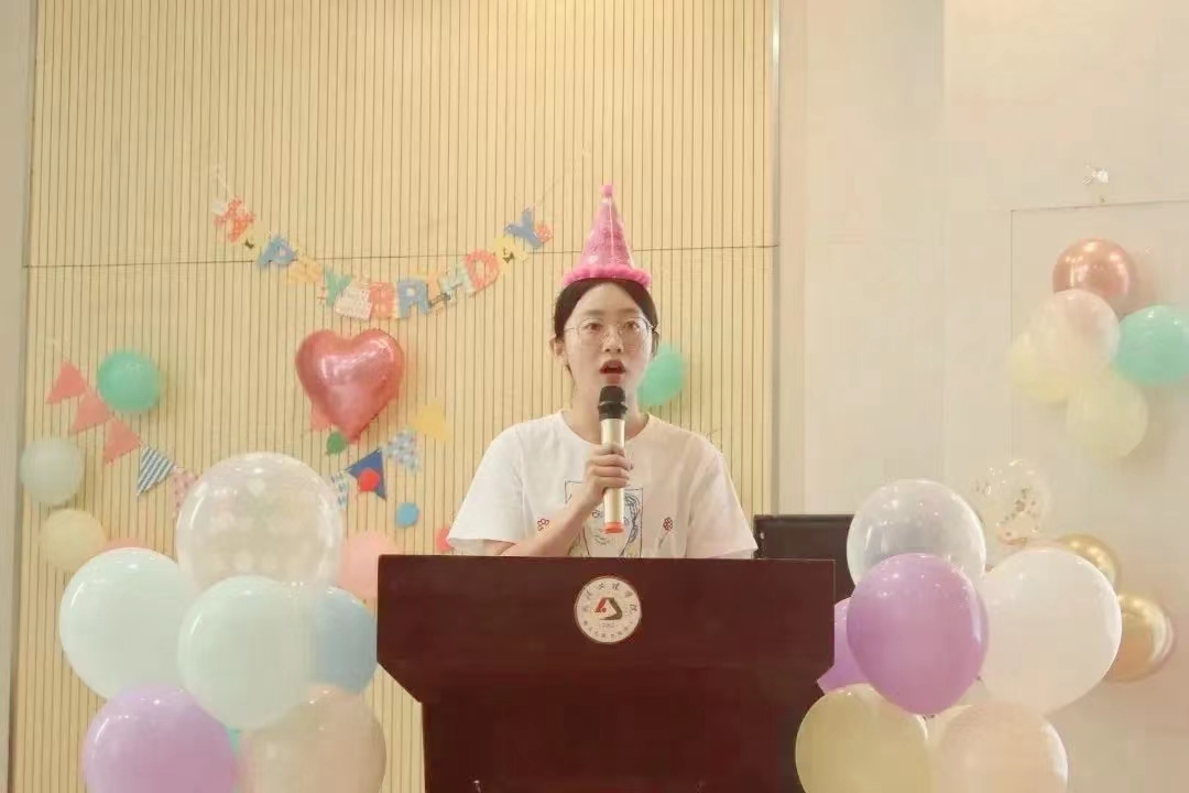 球友会教师、“寿星”代表郭贝老师上台发言。她激动地表示:“这是我第一次参加公司举办的集体生日会。身临现场,我被浓浓的生日氛围所笼罩,祈愿各位‘寿星’们不止今天快乐,每一天都要快乐,更祝福文理公司越来越强盛。”