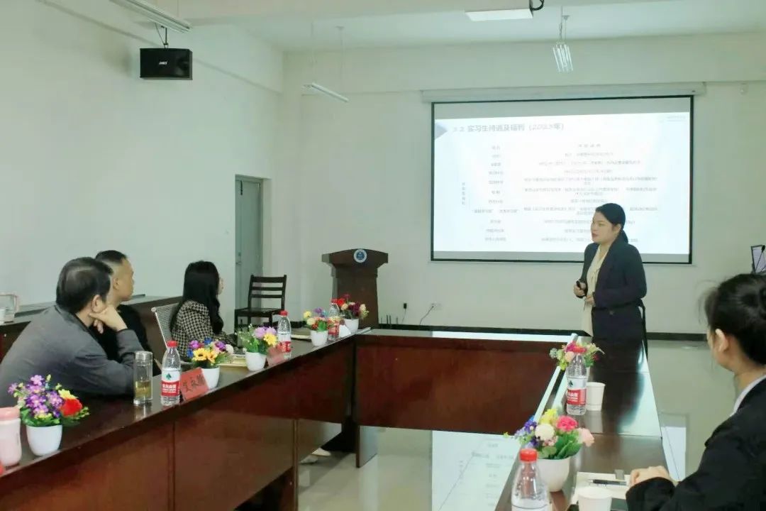 会议伊时,曹晓婷主任对现代牙科集团旗下的现代牙科技术(东莞)有限公司的团队力量、教学设施、教学管理、员工薪资待遇、企业文化等基本情况做了介绍。她表示现代牙科集团是一家专业从事义齿研发、生产、培训、销售及服务为一体的国家高新技术企业,有着与众多高校合作的经验,强烈表达了现代牙科集团与公司展开校企合作的愿景。